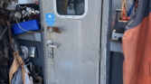 The fiberglass deckhouse cabin is located forward, with the enclosed pilothouse on top. Entrance into the main cabin is via an aluminum watertight door on the starboard side. Inside, on the starboard side is the galley mess