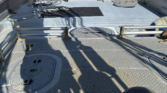 The vessel is configured with a step-up deck around the deckhouse, to the fore/anchor deck, off the aft main working fiberglass deck, which is enclosed with raised 12” fiberglass bulwarks with raised 16” bolt-on extension with angled flat cap.