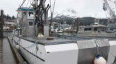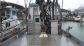 Forward on bow is anchor and anchor windlass. The hull sides and bulwarks are protected by two hard plastic rub rails that extend longitudinally. The bulwarks average 16” high with scuppers cut into bulwark for deck drainage. The work deck is of a typical Prince William Sound seiner configuration with deck winch, main mast, main boom, two picking booms, power block and hydraulic winches to orchestrate the operations of seine fishing. All ship’s hydraulics are from two hydraulic pumps, driven off PTO on main engine and transmission.
